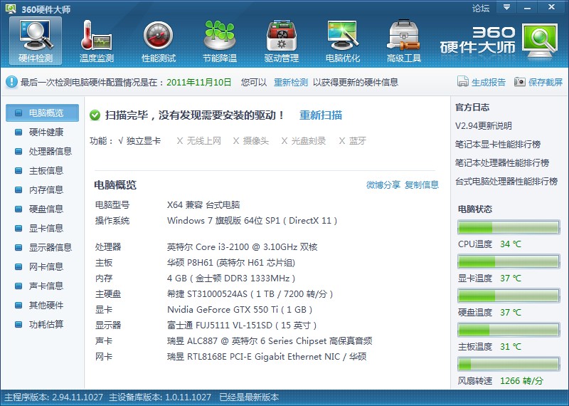 下面附上今天京东商城报价单和硬件大师测试结果图