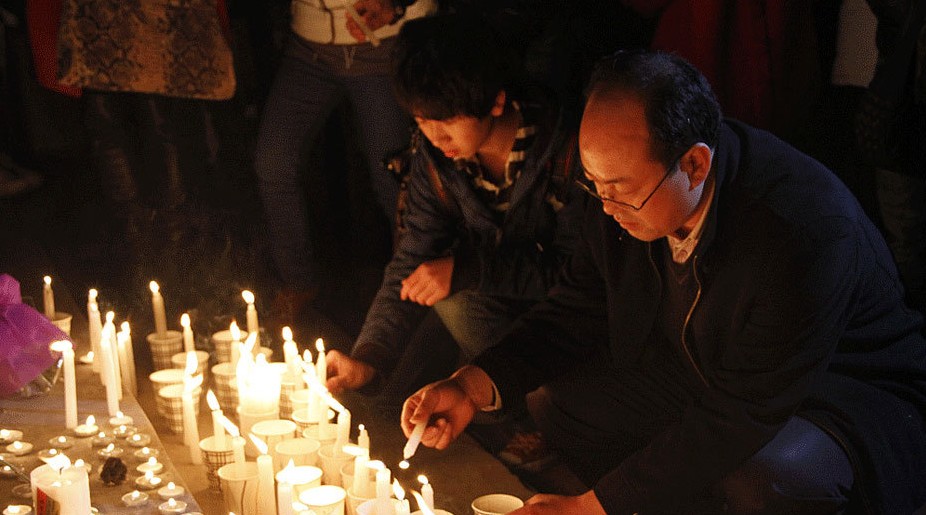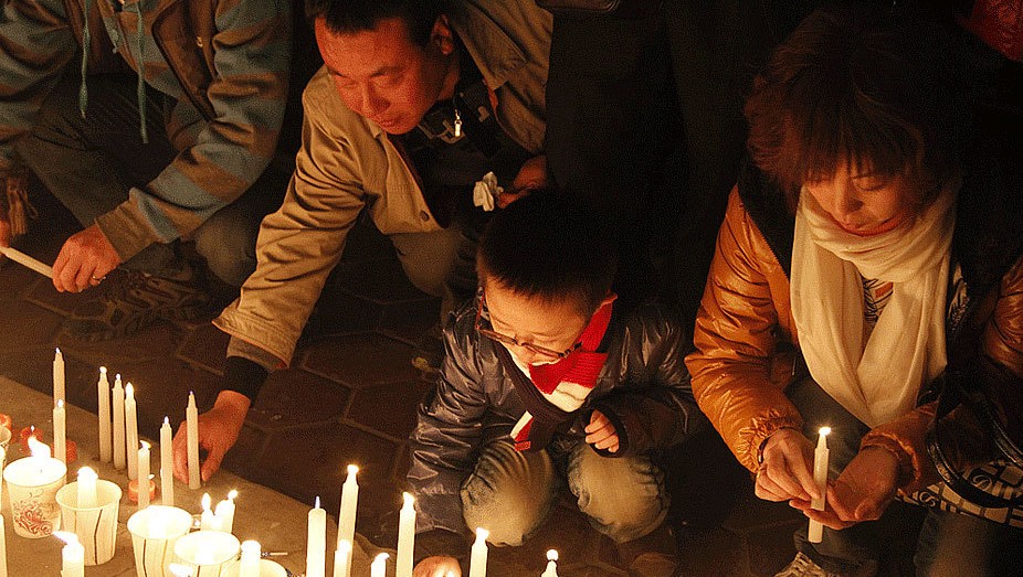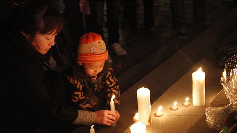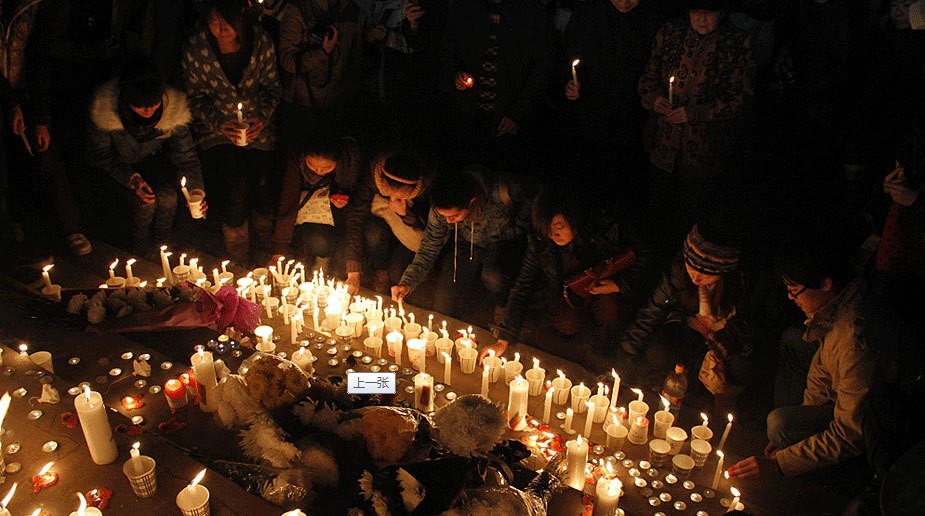 兰州民众为甘肃幼儿园校车事故遇难幼儿祈福