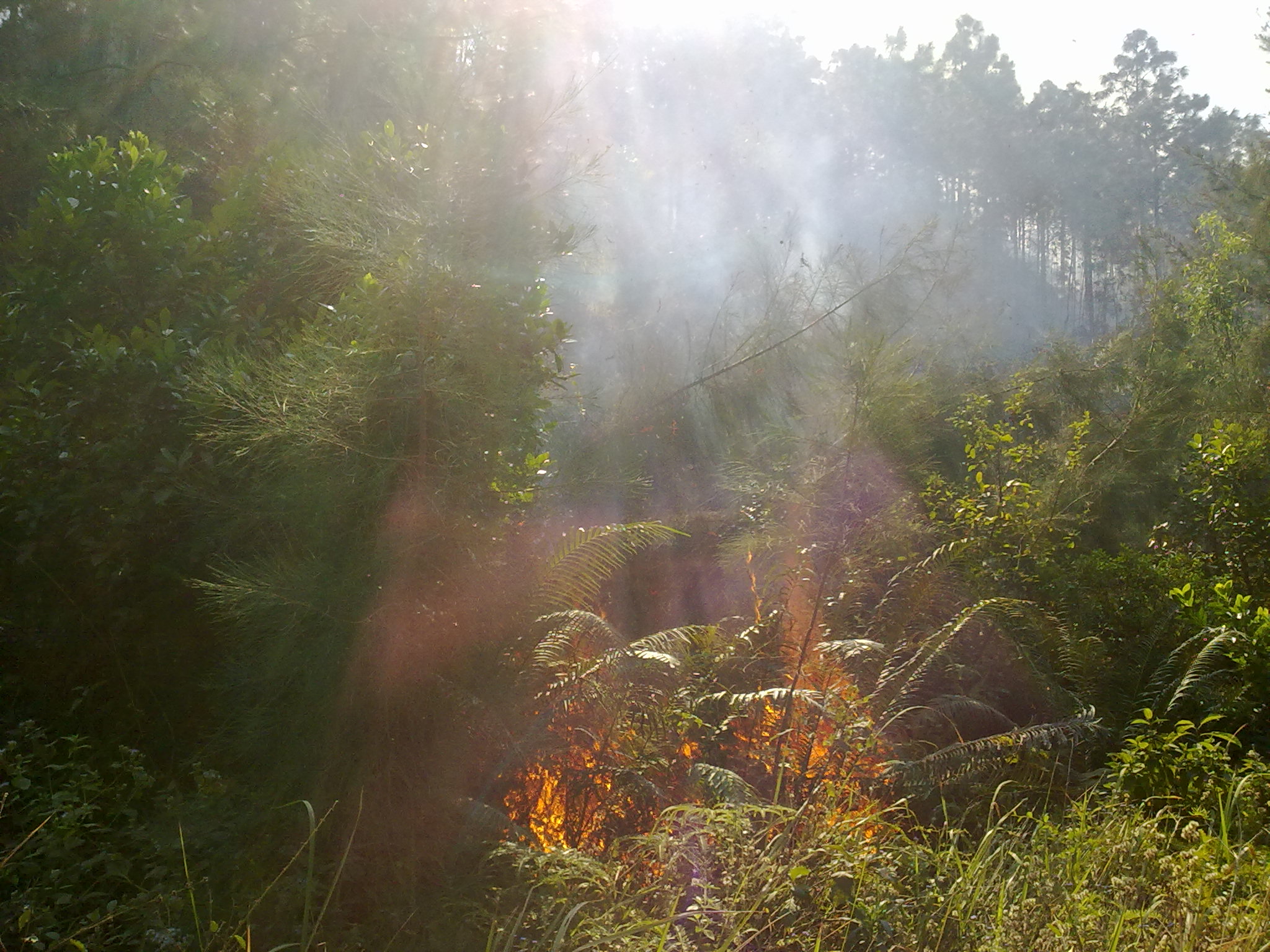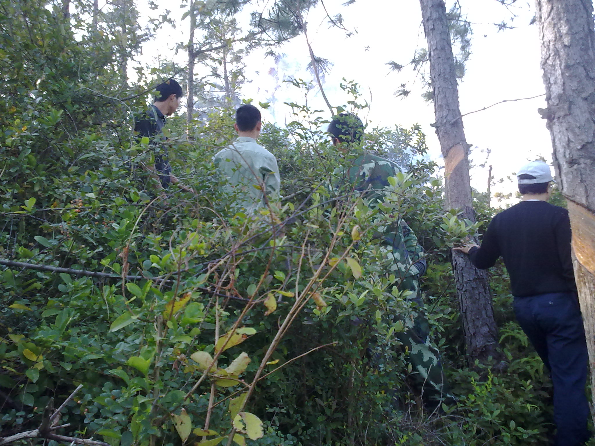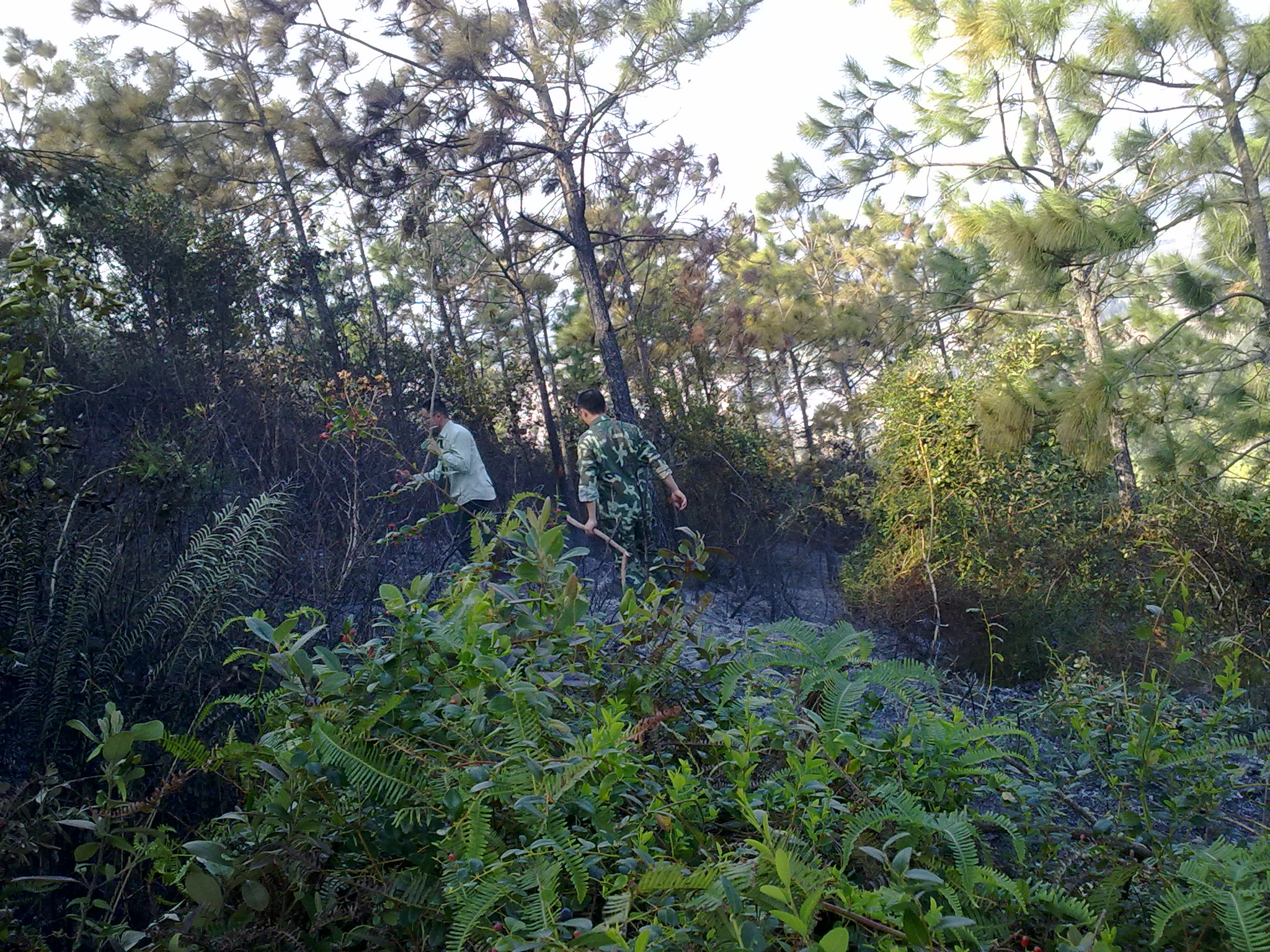 12月15日中午,由于风高物燥,位于北山油库附近的北山岭突然着火,山岭上浓烟滚滚.眼看着北山岭上的满岭树木就要毁于一旦.就在这时只见一道道绿色的身影奋不顾身的投身到火海中去,与大火进行顽强的博斗.在绿色身影的带动下,更多的身影也紧随其后冲进火海当中.经过几个小时的不懈努力,熊熊山火终于被扑灭了.