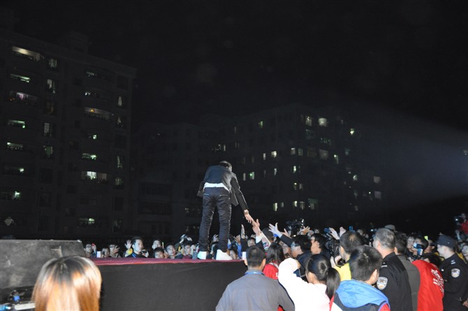 17号晚的演出,观众入场至九点才人齐,九点开演十一点半左右结束,现场风很大。