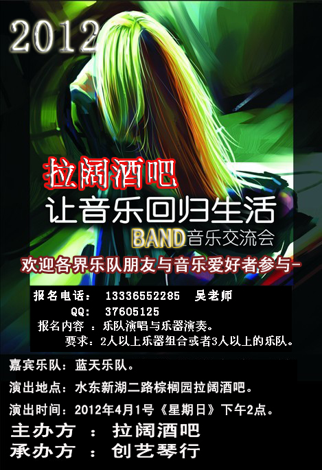 报名需要提供:组合或乐队名称,成员姓名与联系电话。