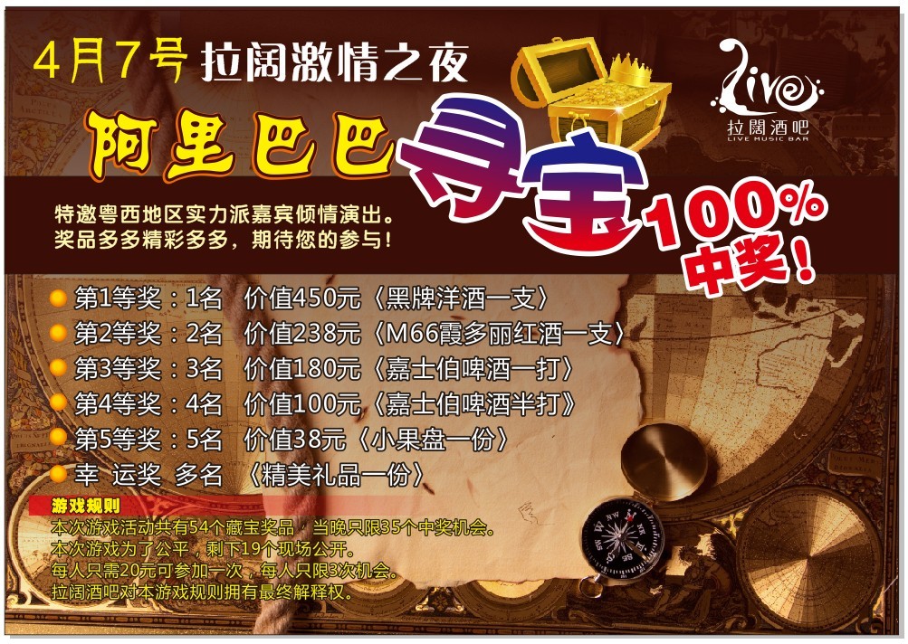 B binbin0668 幼儿园 注册 2008-02-04 消息 26 反馈评分 0 点数 0 2012-04-07 #1 4月7号拉阔酒吧‘激情之夜’啊里吧吧藏宝百分百中奖。 附件 啊里吧吧藏宝.jpg 291.6 KB · 查看: 297