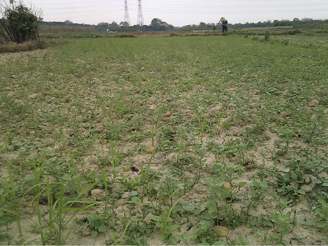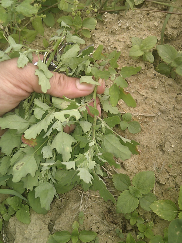 这种荒废的田的盐子菜是最比较好的,但是由于田太干了,菜虽嫩,但捡半天也捡不到多少!