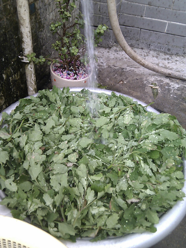 洗干净后,要挑选过并对老成一些去丝,主要拨掉菜茎的丝就好了。