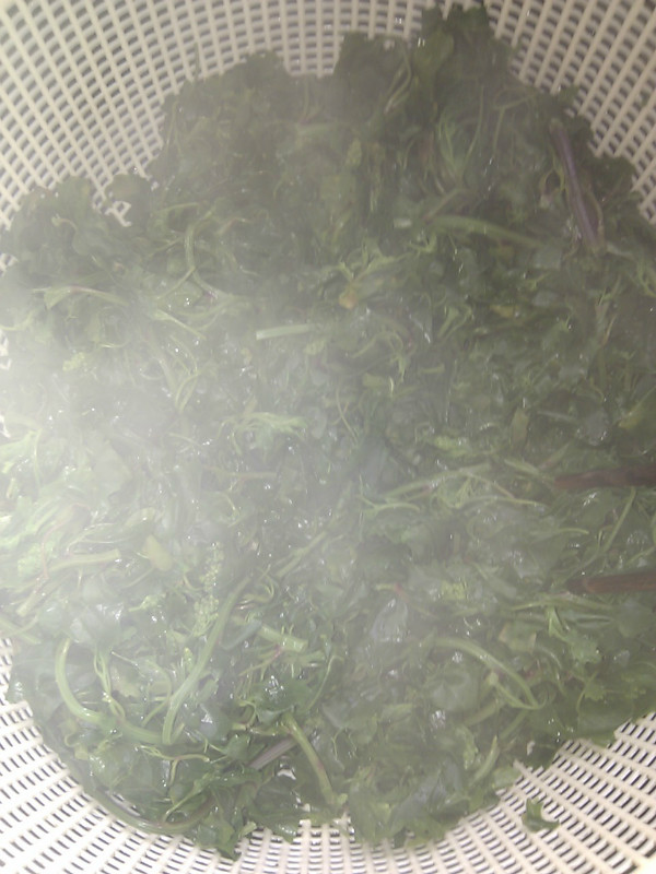 可以了,就用筷子把菜捞到篮子里,让水分和热气尽快散去。