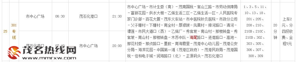 茂名公交301专线线路图