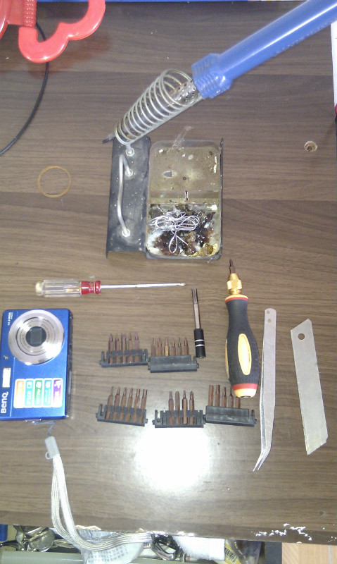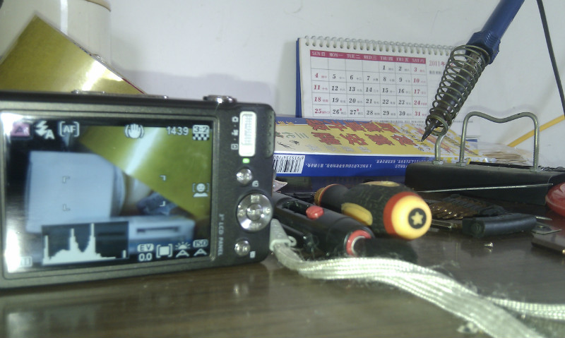 首先准备好工具:电烙铁,螺丝刀,刀片,镊子,因为是国产的,所以打算不要放电用的灯泡(因为相机里面电容有高压电)