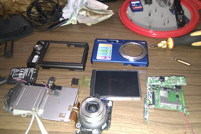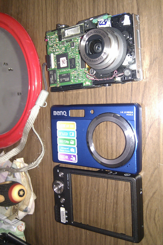 同事丢过来一台相机,说是军训的时候拍照太兴奋摔坏了,看看能不能修好。其实拿得相机多,拍的照片也不少,拆的相机却不多。从历史上记载,我只拆过一台佳能的A70,尼康E4300两台,奥林巴斯C5060,而且这些相机也是在拆之前都不抱希望修好的。除了E4300给改造成手动之外,其他的全部报废。呵呵,不过也不要以为是败家的表现,因为佳能A70和E4300就算是好的都是不值钱的东西,何况还是坏的。