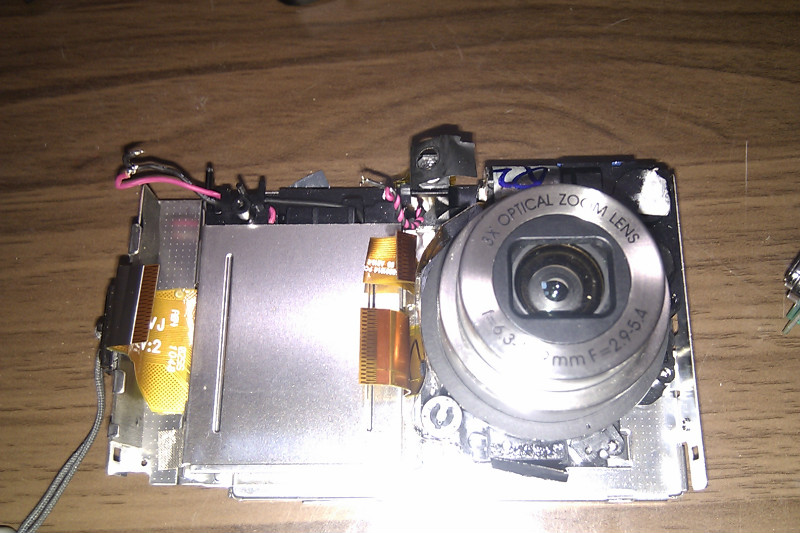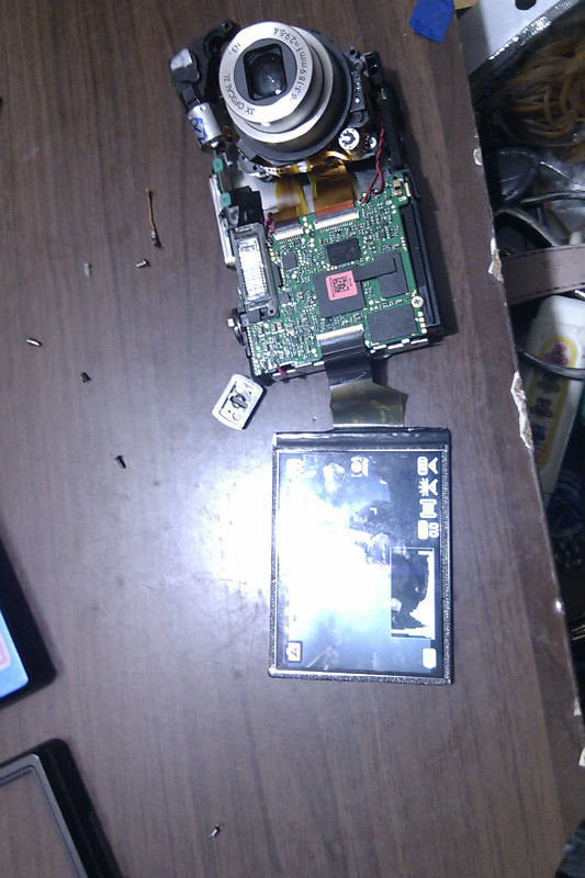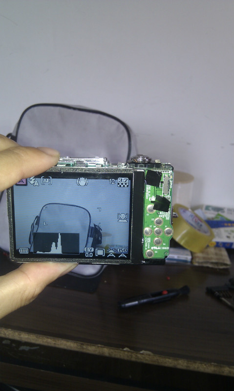 最后一次,已经花了很长时间了,所以打算还不行的话就装上不管了。于是将所有的螺丝都扭紧,将各个模块都一一归位,一按开机键,终于镜头自然潇洒地跑出来,显示屏上也露出了久违的一面。看来问题已经解决了!!