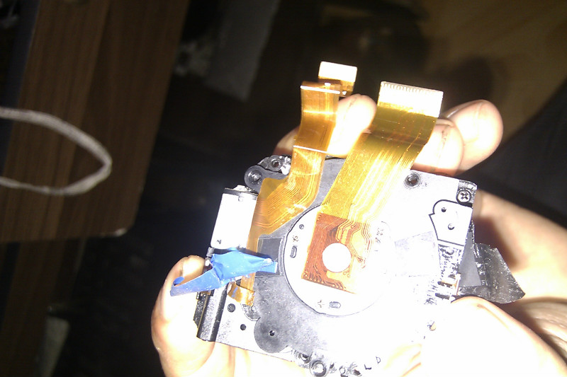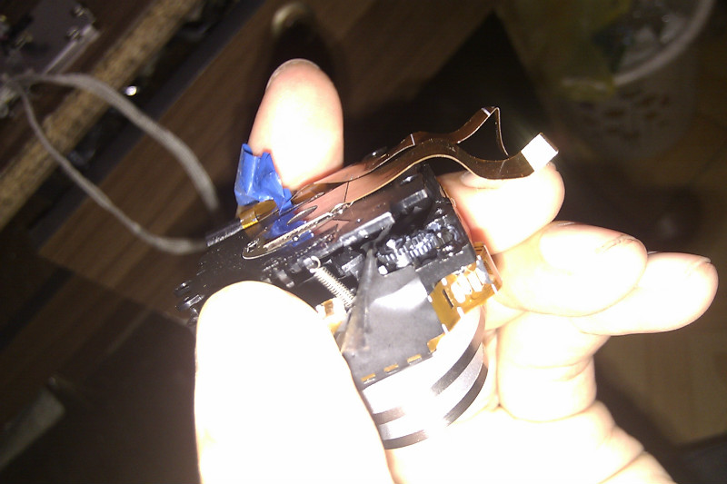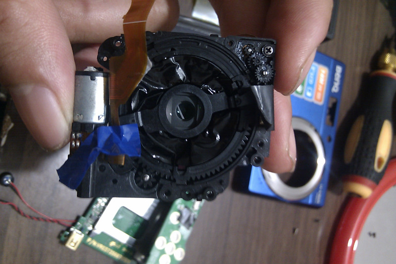 接下来,就是要看看镜头组哪里出问题。镜头组里面的构造是有点可怕的,因为那些齿轮又小又脆弱,全塑料构造外加弹簧,弹簧是最让人烦恼的,而且也有可能是导致最后装不回去的关键因素。