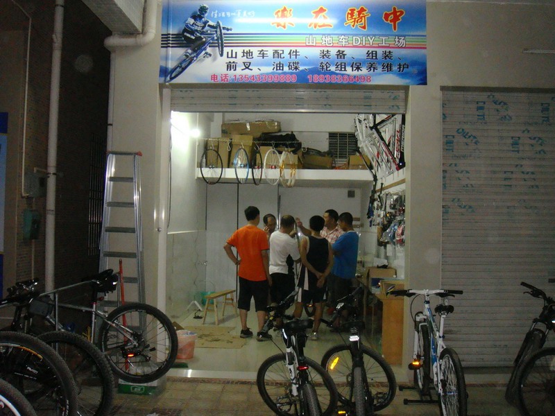 其实俱乐部这东西见仁见智吧,本想搞个自行车爱好者协会的,但是注个册天朝的手续最快要1年还得签n多的文件,最要命的是还得向zf交3-5万的手续费用,不协也罢(其实俱乐部也麻烦所以就不挂牌了)。早两三年前大家都有这个想法了但由于种种原因一直只是说说就过了。车友一直都是东西南北各自为营,无论夜骑锻炼、长途骑游、山道xc都像一盘散沙,缺少的是一块属于车友的可以交流可以联络感情可以凝聚那股力量的落脚点。随着队伍一天一天的壮大夜骑回来都挤到我家实在是挤不下了,都挤了3年了是时候该换换地方了。于是与几个车友合计后在海堤附近(主要环境适合骑车)租了个小铺面作为车友的落脚点起名为“乐在骑中”。居然地点铺面是租的灯光水动的总得要钱的,最好的办法就是低价卖点小配件,diy帮车友装车或帮车友维护下前叉、油刹、轮组等得以长久维持。大家可以凝聚在一起靠的是有共同的爱好,所以俱乐部还是以凝聚为主营利为辅的,希望车友可以理解。这几天大家把该有的维护保养工具、常用配件、零件都准备得差不多了,五一正式开门,当天骑自行车来的赠骑行小礼品一件,送完就没,欢迎骑友来品茶吹牛,俱乐部刚诞生还得望车友们的支持与爱护才得予更快的壮硕成长。(地图上的绿色‘起’字是俱乐部位置)