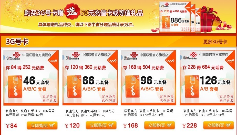 2012年5月2日到4日中国联通淘宝官方旗舰店开业大酬宾活动火热进行中!!!
