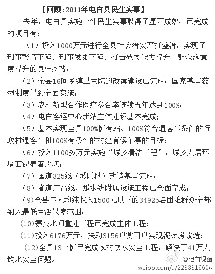 【回顾:电白县2011年民生实事落实成效】你满意了么?