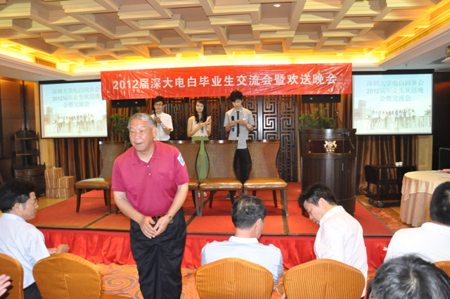 QUOTE(四中乐叔 @ 2012年06月02日 Saturday, 09:14 PM) 2012年6月2日下午和晚上, 深圳电白同乡会在2012年执行会长温家珑的资助下,在南山中心区天利中央五楼的得福轩,召开深圳大学电白籍2012年度毕业生欢送晚会。 近年来,电白县每年考入深圳大学的学生有近百人。 [snapback]3367954[/snapback] 肖奋常务副会长