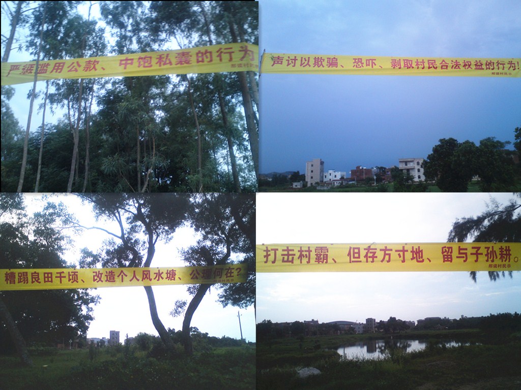 2009年1月至今,吴建壮指挥他人把村边2万多平方耕地铲平而致荒废,造成杂草丛生,不能耕种,引起村民极大愤慨。吴建壮夫妇有钱得势,强霸村民土地、侵犯民权、目无国法、胡作非为,还大肆扬言:“在那读村无人敢告我,在广东省内也告不倒我……”村民敢怒不敢言,群众意见纷纷,愤恨至极。为此,很多村民经常向本琼凡村委会支部书记杨术反映,请求处理,杨术说:“有钱人的事我不敢办,你们请上级办。”无奈之下,村民群众只有上访。