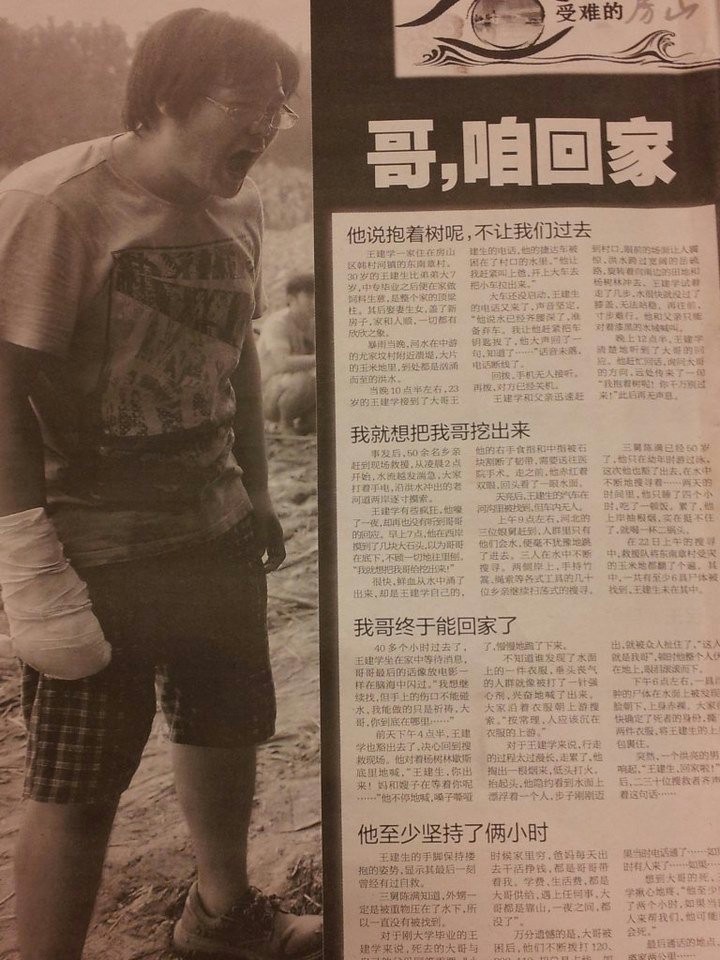 校内、微博已经没有了调侃来北京看海、游泳的话语!而目光全部投在了受灾最为严重的北京西南方远郊区――房山!! 今天,在校内发状态,“上班都没车可坐,各种封路、各种绕线”。引起了城里同学的各种疑问,是,因为城区已经没事了,可我们房山已经不是暴雨前的房山了! 一场暴雨过后,重现我们眼前的房山如同当年震后的汶川,房子塌了、车报废了、大树拔根了、马路全烂了,各种无人认领的尸体在水上飘着!而新闻报导呢?死亡10人? [attachmentid=298295]
