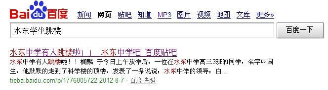 今天从微博得知一跳楼自杀事件,未经证实,大家先看看传闻吧 今天**中学发生了一名高三学生跳楼 的惨剧,他死前在腾讯微博发了一条说说 ,说学校的领导侮辱他,嘲笑他,想让他退 学,他要以死做鬼去找他们!一条十八岁 的青葱生命就此离去!究竟是怎么一回事 ,让一个孩子选择了死亡!还公道,求真相 [attachmentid=298787] [attachmentid=298786]