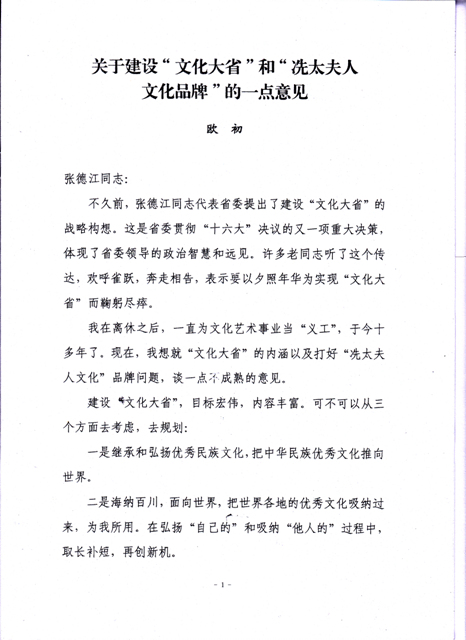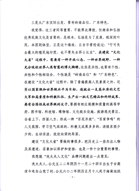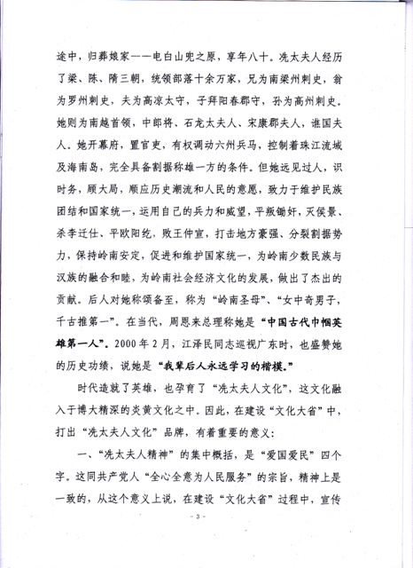 关于建设“文化大省”和“冼太夫人文化品牌”的一点意见