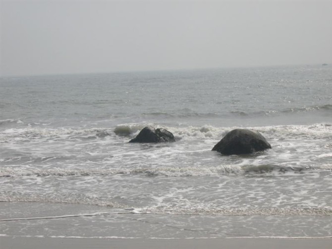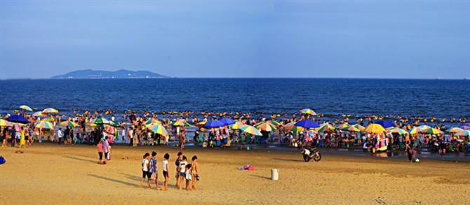 中国第一滩,黑黑的海水,黑黑的沙,下水上来全身痒
