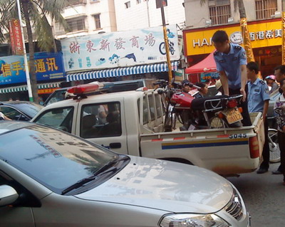 据闻今日下午在水东汇景广场大门前路段,有两名飞车抢夺嫌疑人,驾着一辆红色125摩托,"可能是抬上警车那辆",疑是跟踪一辆助力车主,疑是为了抢守驾助力车主男的头颈部金链,疑失手后两车相撞,听闻嫌疑向车主撒疑似石灰粉后,逃之,现场疑似留下作案嫌疑车辆,后警方赶到,欲知更具体,楼下接上!