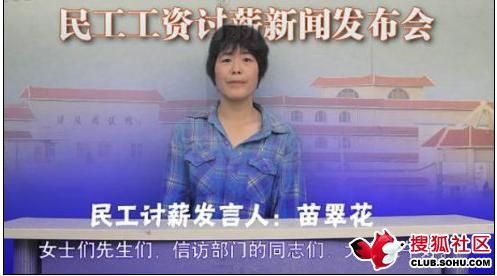 素材:女民工:“我们主张和平合理合法地索要款项,以和为贵。以稳定为大局,从不非法上访。”据悉,这位自称“苗翠花”的民工讨薪发言人向天津某殡葬管理所追讨1380万工程款,其中350万是民工工资。