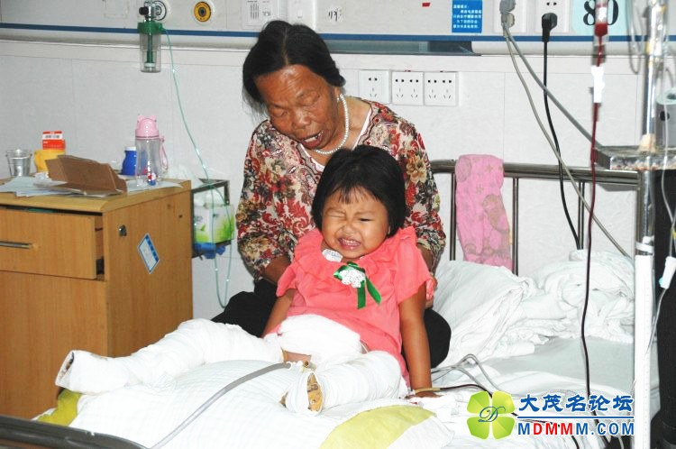 小女孩很懂事,面对一阵阵的剧痛,并没有大哭大闹,实在忍不住地时候捂着嘴巴小声地哭了出来,实在累了在妈妈怀里睡着了