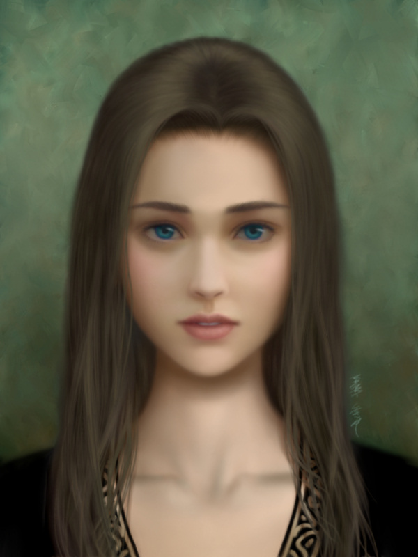 我看了这幅画也有很深的体会,我发现画这副画的作者很巧妙的在眼眶四周布下粗看看不出的阴影,但长时间盯着她的眼睛看就会因为那 些阴影而觉得只能注意她的眼睛(表达不好,看过的应该明白我在说什么)再加上那诡异的眼珠。。。。。。