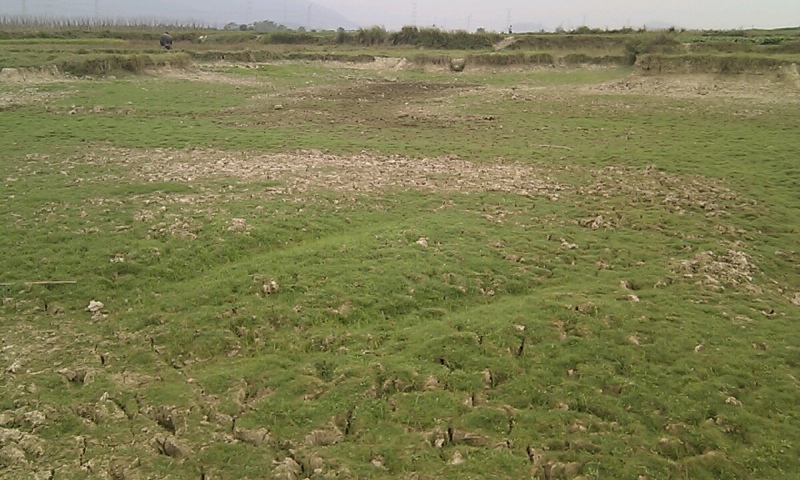 干涸就干涸吧,看着塘底一片绿草,我就知道我来得很迟了。虽然难免有点失望,不过我还是有点欣慰这里干干净净看不到成堆的垃圾。起码除了草绿色和泥土的灰黑,不会多见其他颜色的东西,也没有那恐怖的烧了半边的死人床木。空空旷旷,想象一下,春水降临的时候,这里应该还是老样子吧。