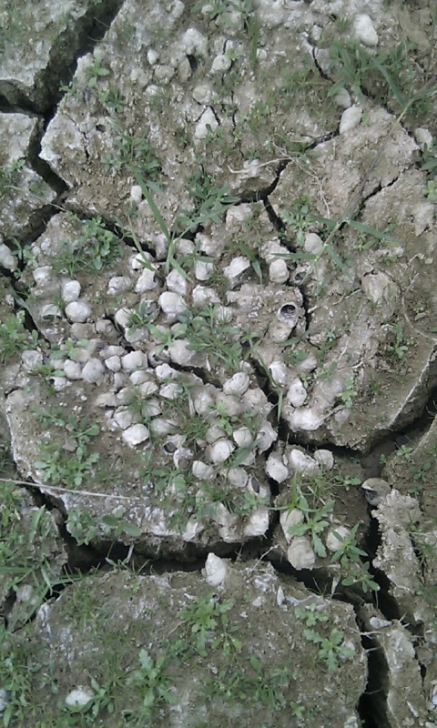 这里随处可见螺的外壳,还是像以前那样,最多就是那种“苦锥子”,这种螺没田螺好吃,那炒得香香的也算一道美味。我在一大堆“苦锥子”壳里,找到了几个田螺的外壳,呵呵,久违了!不用再担心会陌生。看着它们的个头,我就觉得它们应该生活过得不错!化肥农药或者并不至于让它们灭绝,它们存在还是没问题的。在水塘最潮湿的泥浆里,我竟然还翻出来几条活着的泥鳅,还有一个活着的小扁螺,我突然想我是不是可以找到一只活着的田螺?于是眼神在这泥堆里地毯式扫视,手该挖时就挖,喔,还真的有。一颗挺大的,潮湿的躯壳,那重量还有那紧闭的螺口。人总是有点贪婪的,挖一颗,能不能挖到两颗?事情好像变得有趣起来,让人有点盼头,于是这躲在泥里还活着的家伙被我当成了宝贝,看过了夺宝奇兵,国家宝藏,我此时俨然成了一个充满智慧的寻宝者。
