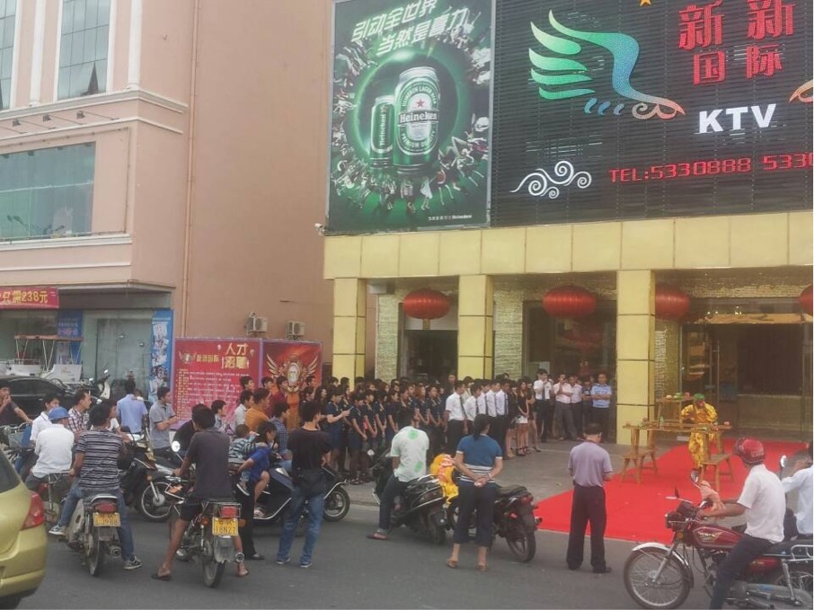 昨晚与前几晚途经时,见有门囗不知是服务员或迎宾清一色站列在大门口,欢迎来客,而旁边有大几个保安在一旁,另一边的停车位有大几辆小车停靠,门囗的摩托也有很多辆,个人感觉生意应暂时没先前的那么好了,可能要一段时间调节吧?