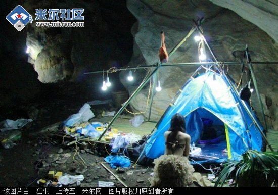 东莞一“90后”女职员, 觉得世界末日快到了,竟然辞职到四川深山避难,甚至体验穿树叶遮羞的生活。3个月后,她恍然大悟,觉得自己很幼稚,于本月17日返回东莞继续上班。很多网友质疑此举是炒作。接受记者采访时,这位叫梁承莉的女孩完全否认,反复说自己“山洞避难” 的举动太幼稚。图为梁承莉自晒的“避难”照。