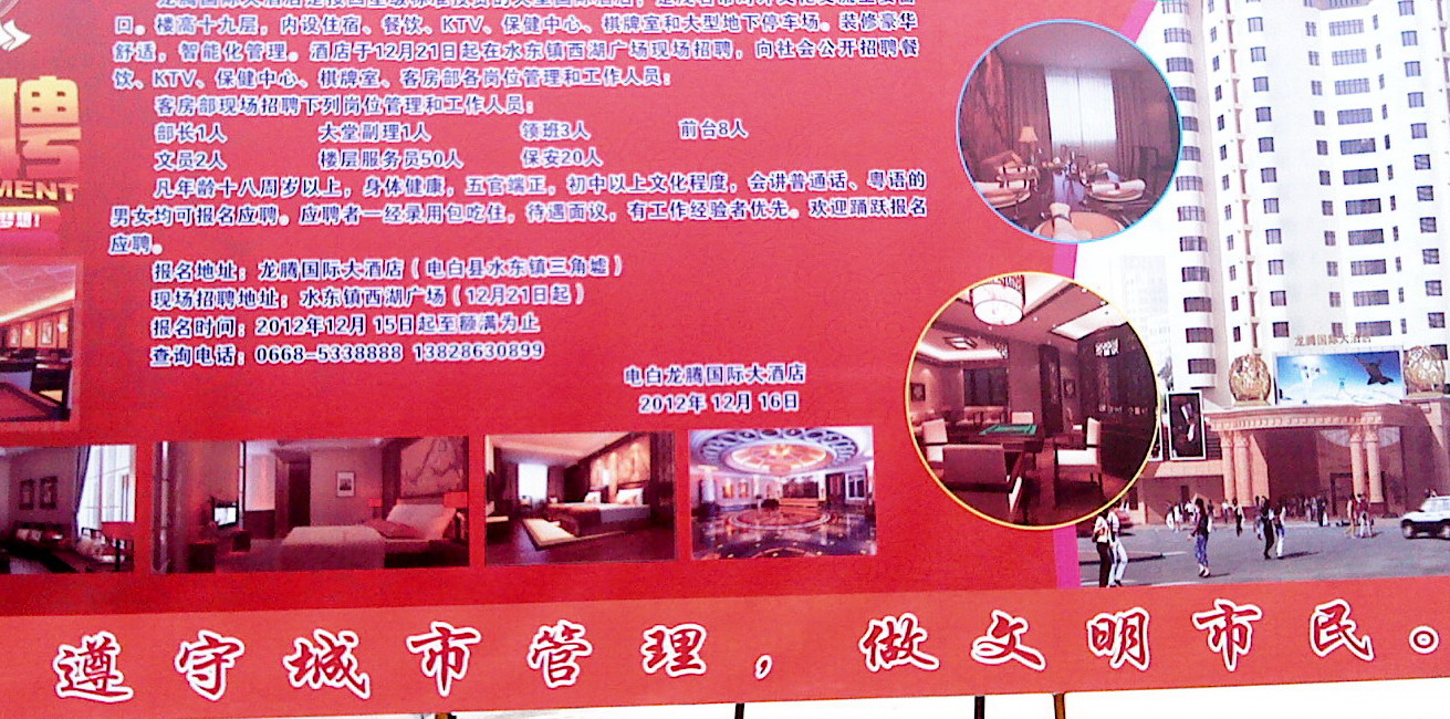 我还想到一个关于腾龙的争议:如果这栋烂尾楼一定要通过占用公共资源的形式盘活且只有盘活这栋楼这片地区的经济才能发展起来,那么,在经济发展和公共利益面前,我们会如何选择的?政府是选择前者的,至少我们看到了。我们民众呢?我想,我们对公共利益的维护决心好像也没大到哪里去,至少我们没为维护公共利益做过什么。