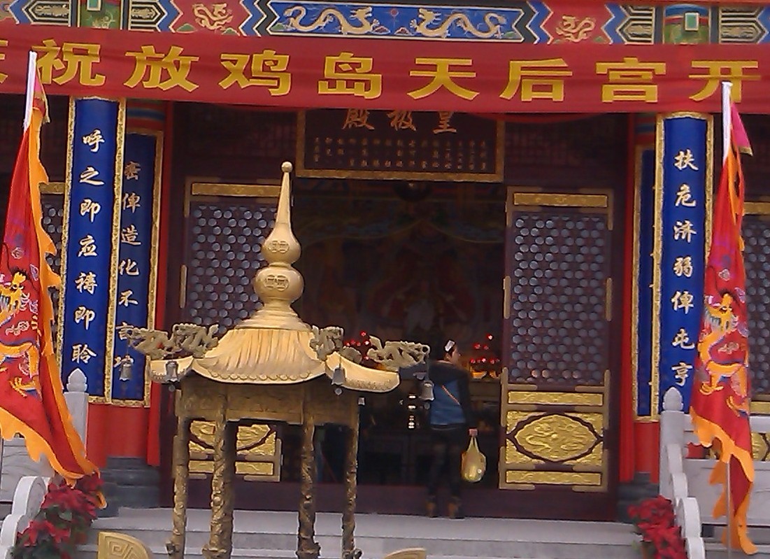 我真的非常怀疑,放鸡岛天后宫对联为什么不请行家审核。一共五副联,三副联同声落脚(上下都是平声或仄声叫同声落脚),这是开玩笑的吗? 汪洋大海作为茂名市的诗词联协会的领导,为什么不敢出声?是不是因为自己的五律被刻入石头得了红包就不好意思说话了,还是老汪看不出来?