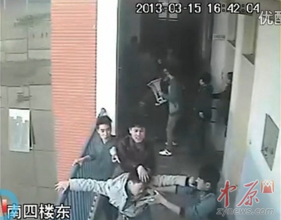 2013年3月15日,对民权县东区民族学校的多名师生来说,是个不堪回首的日子。当天16时40分,一伙社会人员闯进九年级一间正在上课的教室,将学生拽出,疯狂殴打。监控摄像拍下了这令人发指的一幕。