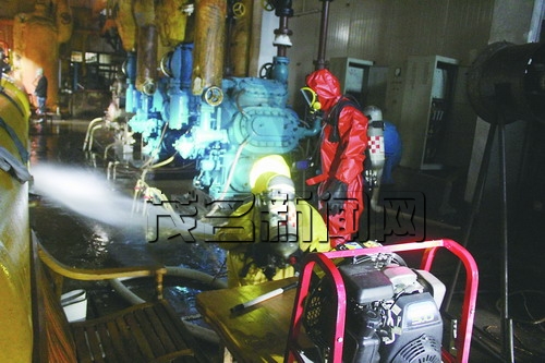 昨日,消防官兵接警后,立即出动了2辆消防车和12名官兵赶赴现场。据官兵了解,连接液态氨管道阀门已被关闭。于是,官兵分工合作,3名官兵穿上防化服进入现场,用排烟机将室内残留的氨气排到室外,同时用水枪把室内积水冲到室外。而室外的官兵则用水枪稀释厂区残留氨气。经过近20分钟的及时处置,氨气被充分稀释。