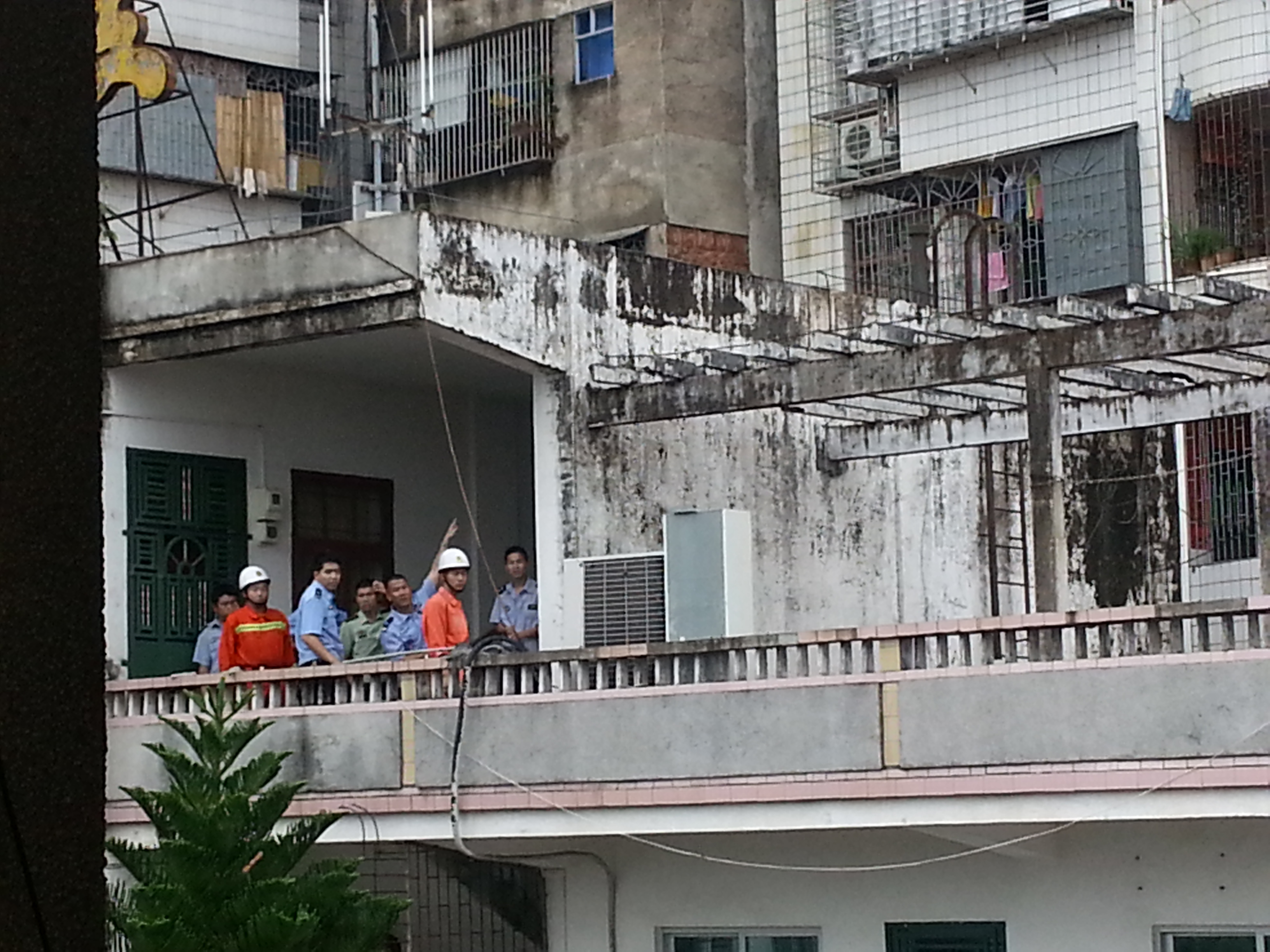 今天中午1时半,一疯子跑到财政所楼顶,一会坐在栏杆上,一会拿砖头向楼下乱丢,门卫报警,几分钟来了10多名警察,一会又来了几位消防人员,也来了救护车。各部门反应及时,先赞一个。