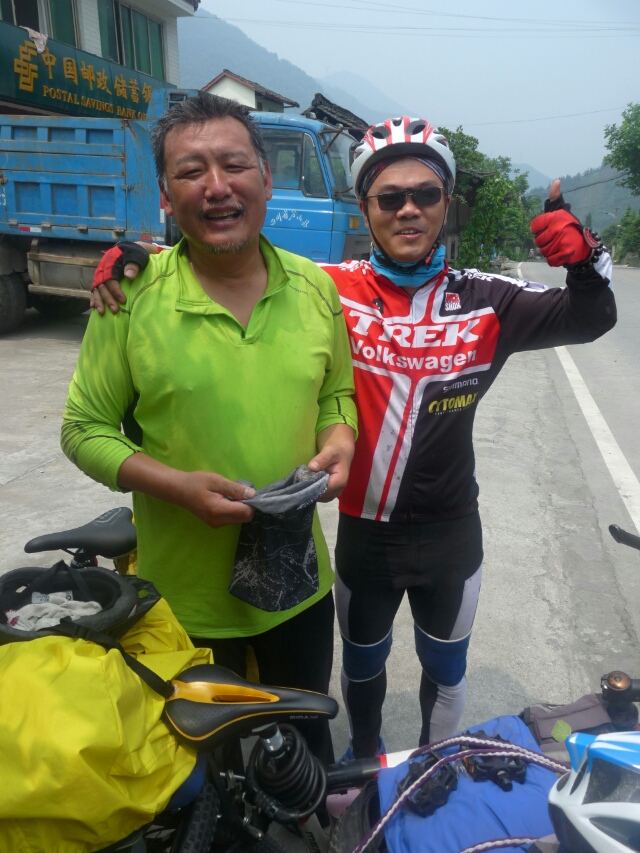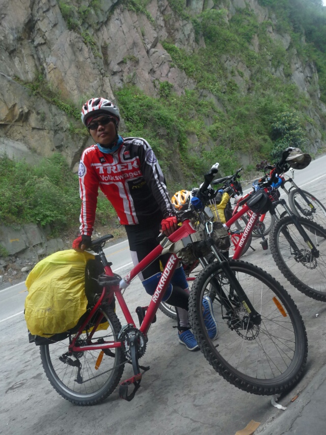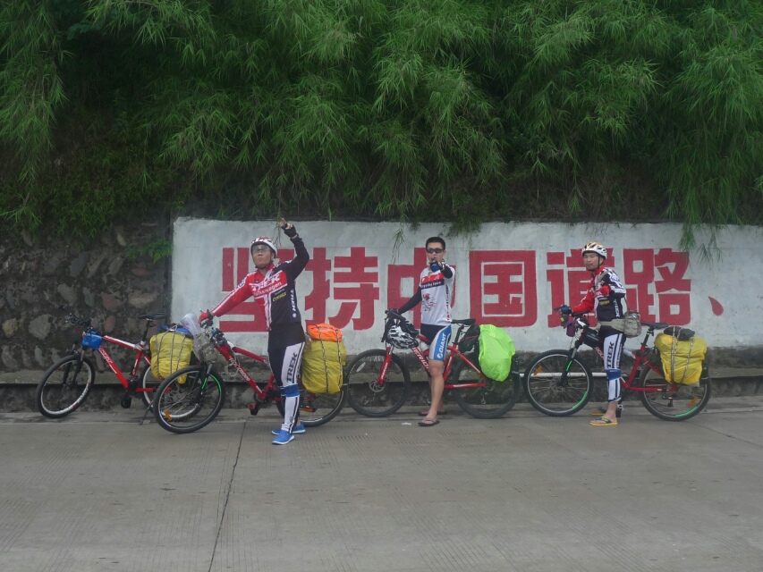 骑行西藏d-4:今天的行程雅安-新沟90公里的旅程都是4-5公里以上的爬坡,4-5-百米的下坡太不成比例,一路都是食屎伤人啊!还好今天买了个护膝,保暖加保护,谢天谢地,连着爬3个长坡之后到达天全吃中午饭,实在忍受不了车的负重,扔衣服鞋子!这个得必须狠心!今天捡了帅哥,在他的教导下终于掌握了一些技巧,令这个行程舒服多了!感谢熊倪!基本开始掌握很很多技巧,比如保持速度,车身的最佳骑行状态!经过昨天的骑行现在慢慢进入状态,手好了九成,腰没有恢复,脚加重了!早上开始踩的2个坡是最困难的,因为身体还没适应,过了之后基本就好很多了。所以后面的几座山很有信心的过了,由于我们一边骑一边玩,走走停停,行程很慢!高佬还经历了第一次爆胎!苦啊。5点多的时候天开始下毛毛雨,还好旅程不是很远了!但是又发生坑爹的事,临最后的几公里又有一个长坡!怎么又是这样。丢!到达住宿的地方就迫不及待的准备开饭,忽然想起大家都不敢吃辣的了,在咨询老板的意见之后决定亲自下厨!哇塞,爽。。。。还是自己的手信好啊!