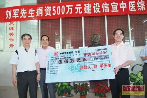 最近,香港兴盛发展有限公司董事长刘军先生决定再次向信宜家乡捐资500万元,用于建设信宜市中医院综合大楼。这是刘军先生继之前先后捐资2700多万元,在家乡建设绍秀体育馆、绍秀图书馆、仕j大道、信宜中学教学楼等民生工程的基础上,再次慷慨解囊捐资家乡的公益事业。[attachmentid=314983]