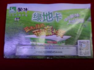 谁人有蒙牛"蓝天卡"呢?本人现有一张蒙牛“绿地卡”,但规定要蓝天加绿地二张卡才能换一箱蒙牛牛奶,如谁人有蒙牛"蓝天卡",可致电18938390238,然后取回二人分。