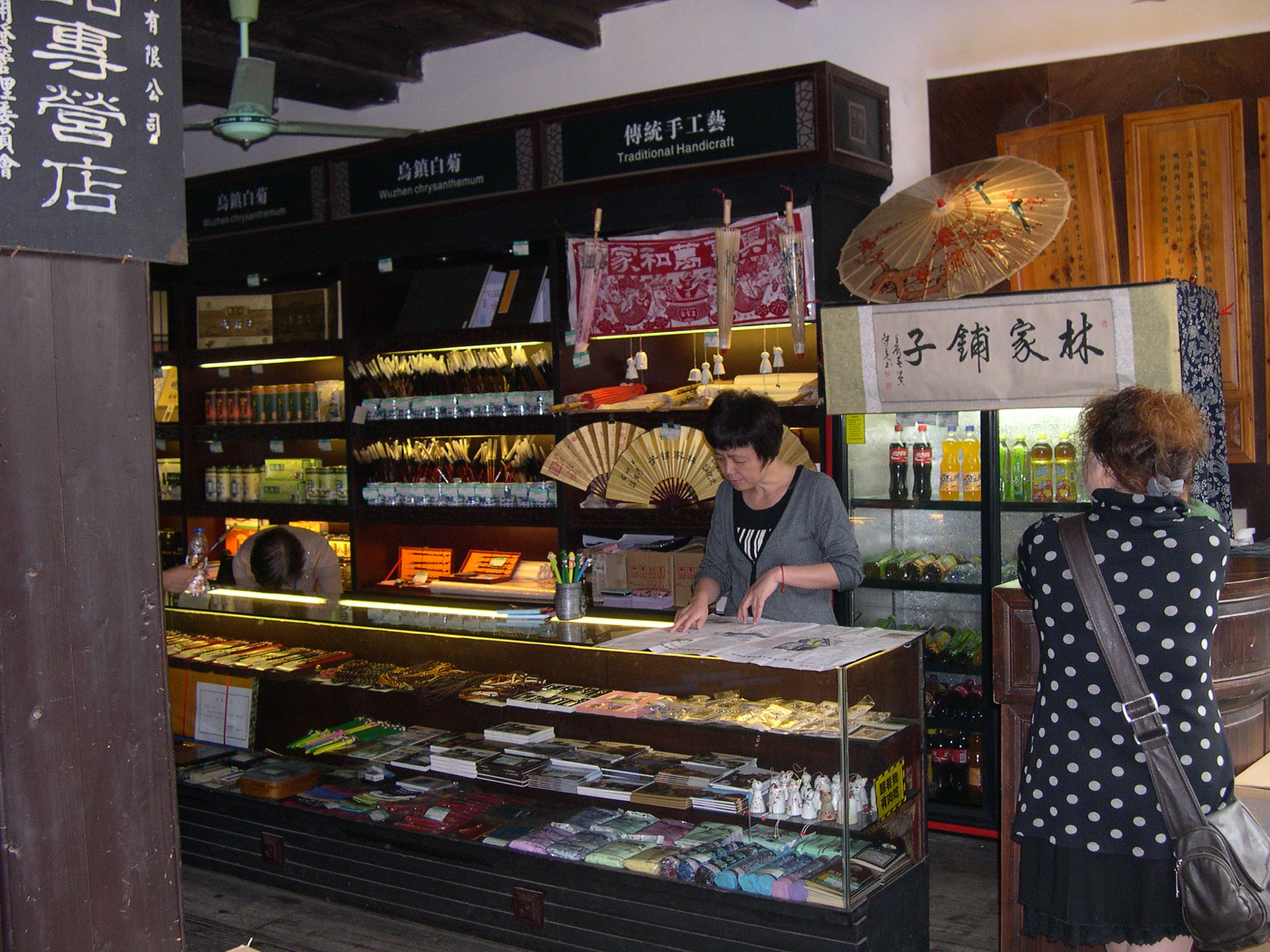“林家铺子”在茅盾故居对面。《林家铺子》是茅盾创作于1932年6月的一部小说。主人公林老板是个谨慎而又精通生意的小商人,在时常萧条、生意清淡的情况下,他却利用“一二八”战争从上海逃难来的顾客的需要,大卖“一元货”,获得成功。“林家铺子”商号因此而得名。但因当时大时代环境的影响,林家铺子还是无可避免地倒闭了。今时今日的乌镇“林家铺子”虽然古朴,充其量也是赝品而已。
