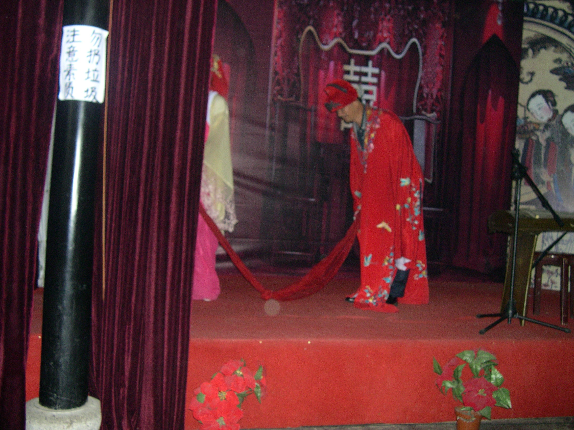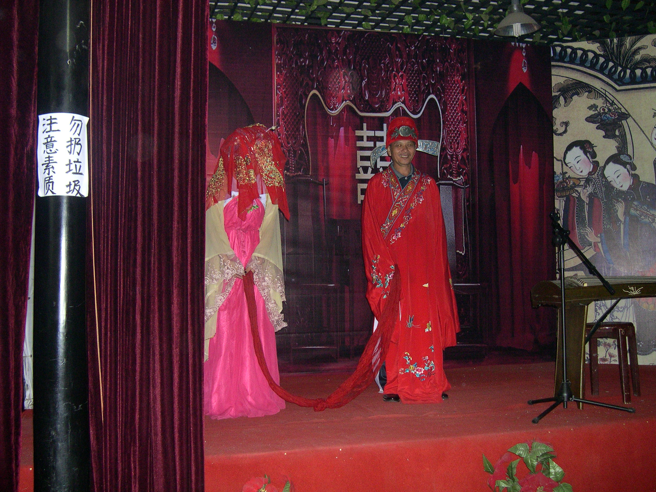 同伴徐君在笔者的“怂恿”下走上台,勇敢地挑开“秋香”的红罩头,并“洞房花烛”两分钟,成了我们往南京的路上的笑料。