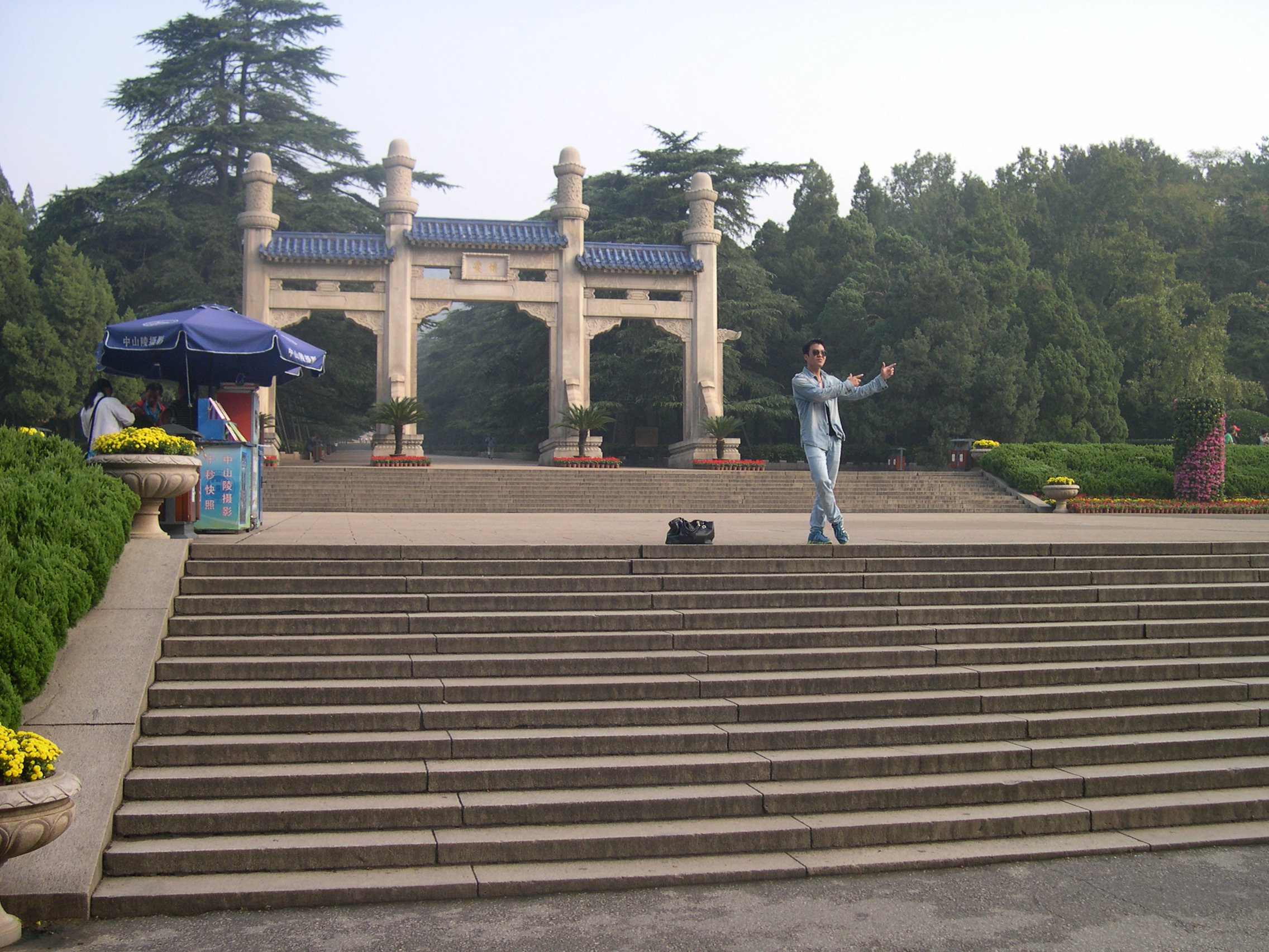 中山陵位于南京钟山风景区,钟山古称金陵山,共有三座东西并列的山峰,屹立在城东郊,是宁镇山脉中支的主峰。东西长7公里,南北最宽处4公里,周围绵延10余公里。 巍巍钟山,青松翠柏,浩瀚似海。这里是中国近代伟大的政治家、伟大的民主革命先行者孙中山的陵墓及其附属纪念建筑群。陵园面积共8万余平方米,主要建筑有牌坊、墓道、陵门、石阶、碑亭、祭堂和墓室等。