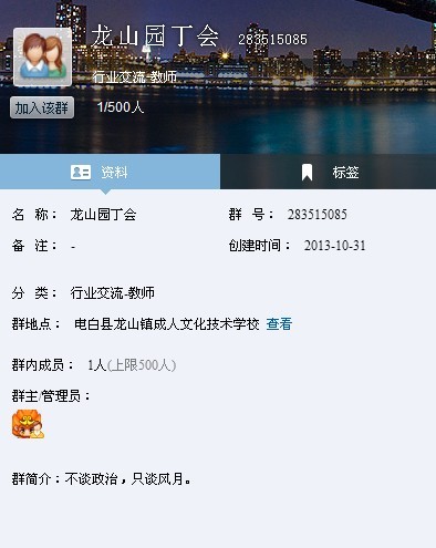 代朋友发帖:龙山教师群 283515085,有兴趣的教师请加入,要求群内单位加实名,情投则合,缘尽则散。