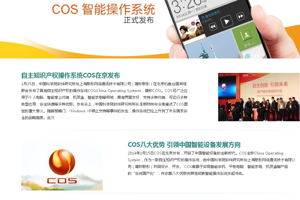 直斥某些无良人士又用假项目骗国家的钱,吞纳税人的心血的也有:明明是基于开源软件Linux的修改版却大言不惭挂个完全自主知识产权的名头,与安卓神似的界面及图标看来就像给安卓改改应用图标,刚出过红旗Linux“丑闻”的中科院以及查不到具体经营信息却传有大背景的上海联彤、去年8月明明说是由HTC与中科院合作研发的COS系统如今却变了说辞更像是为捞钱而改头换面……这是不是又是一幕汉芯大戏?至少,也得是龙芯级别的。(自主产权COS系统的介绍视频)