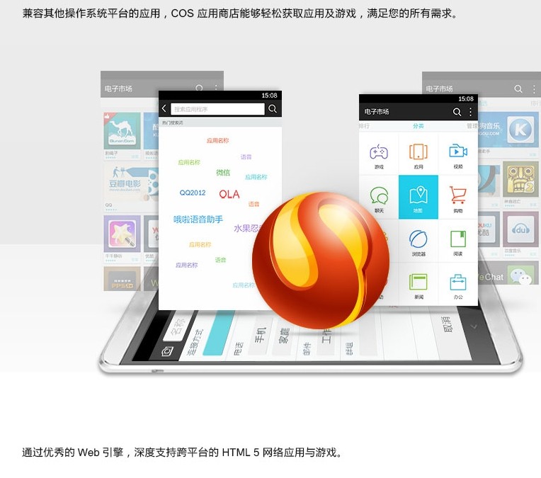 高喊着中国人民从此站起来的有:具中国自主知识产权,将打破微软、苹果和谷歌的垄断地位,刚诞生就已可运行10万应用程序,既解决了安卓过于开放恶意软件泛滥的毛病又不会像iOS一样过于封闭……看来COS两三年内将踢下windows直追iOS和安卓是不在话下了。