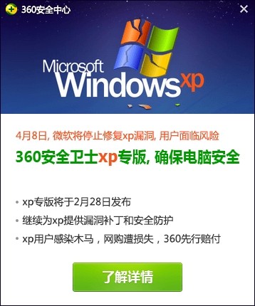微软公司宣布了,4月8日开始,优秀而又略嫌古老过头的win xp系统,不再受到支持,也不再受到保护。意思是说,到时你在使用的xP系统,有可能在一夜间,里面文件受到泄密,银行卡或其它帐号密码被黑客入侵,瞬间盗用。