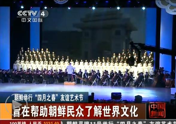 中国自1986年以来,文化部就组成了中国艺术团,多次参加朝鲜“四月之春”国际友谊艺术节活动,参演水平也逐年提高。中国总政歌舞团、中央芭蕾舞团、上海交响乐团、中国东方演艺集团等国内最优秀艺术院团,先后参加过朝鲜艺术节,并荣获13项金奖。 中国艺术团参演的节目有:《中国人民解放军军歌》、《天路》、《我是一个兵》、《走向复兴》、《脚步》、《兵车行》、《士兵与枪》、《扎西德勒》、《春江花月夜》以及朝鲜歌曲《金日成将军之歌》、《金正日将军之歌》、《阿里郎》、《卖花姑娘》等。演出气势磅礴,技艺精湛,获得各国人民热烈掌声,中国大使馆献上花篮,祝贺演出取得圆满成功。