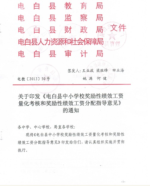 电教[2013]30号关于印发《电白县中小学校奖励性绩效工资量化考核和奖励性绩效工资分配指导意见.pdf