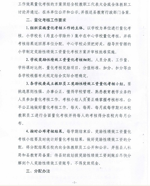 中小学校奖励性绩效工资量化考核和奖励性绩效工资分配指导意见