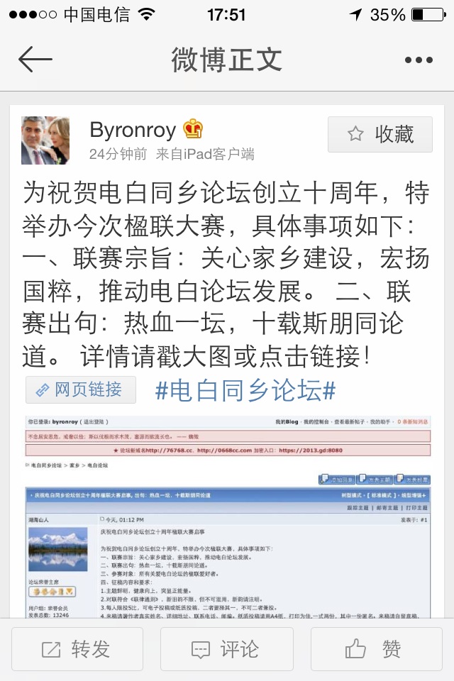 庆祝电白同乡论坛创立十周年楹联大赛启事